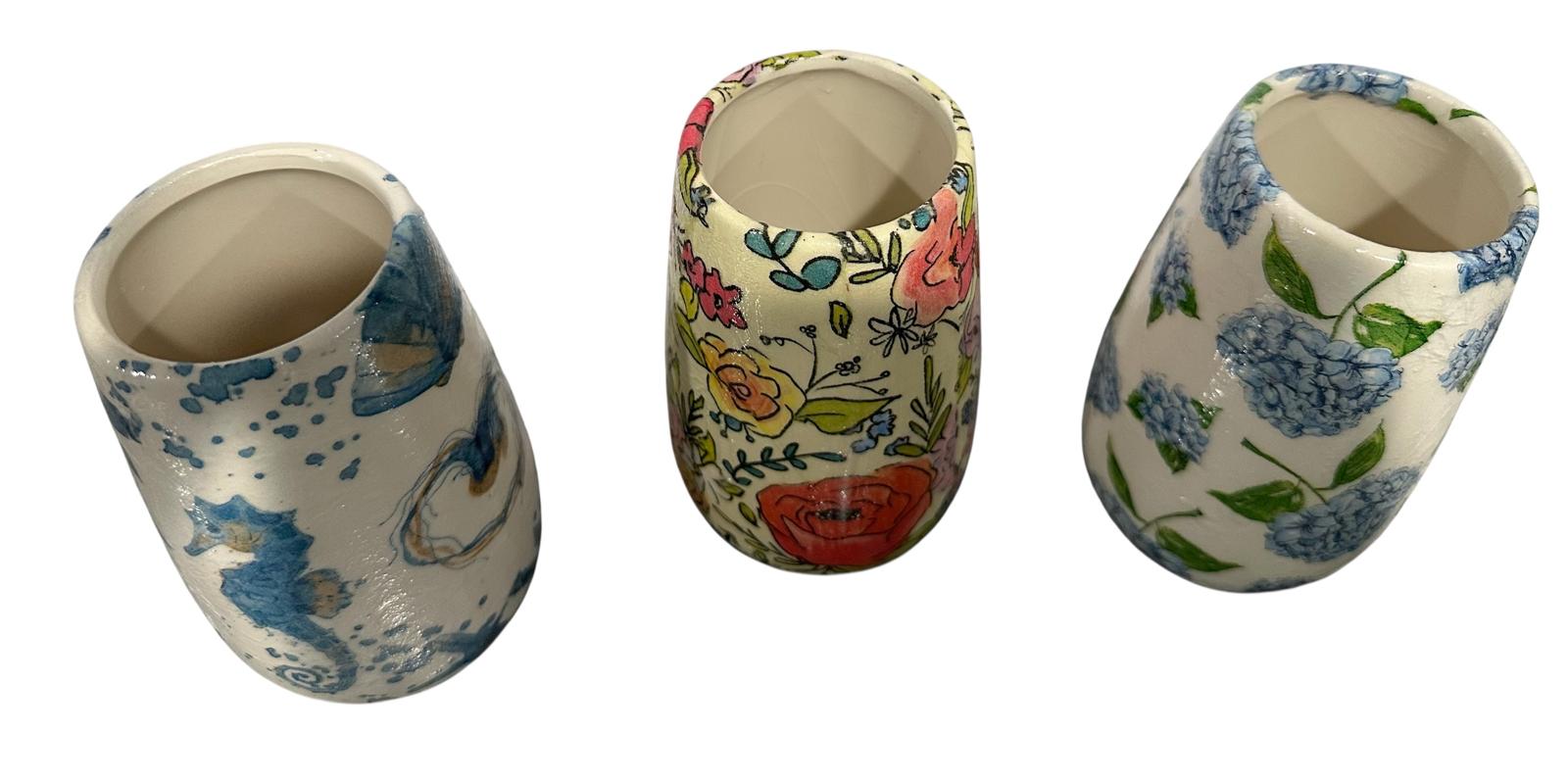 Add a touch of coastal charm and timeless floral beauty to your home with these 5-inch ceramic decoupaged vases from Air Botanicals. Each vase is handcrafted with care, sealed in a glossy finish, and tied with natural jute cording and an Air Botanicals card for a polished finishing touch.