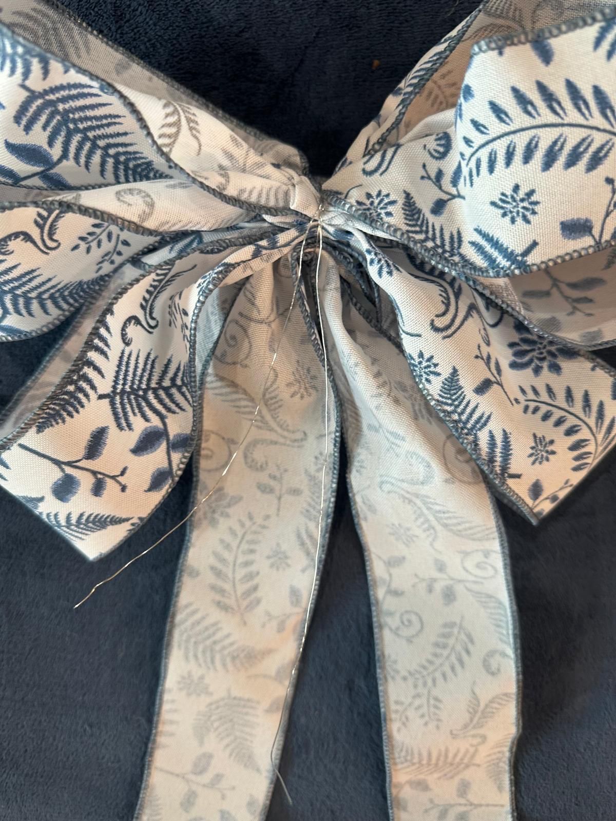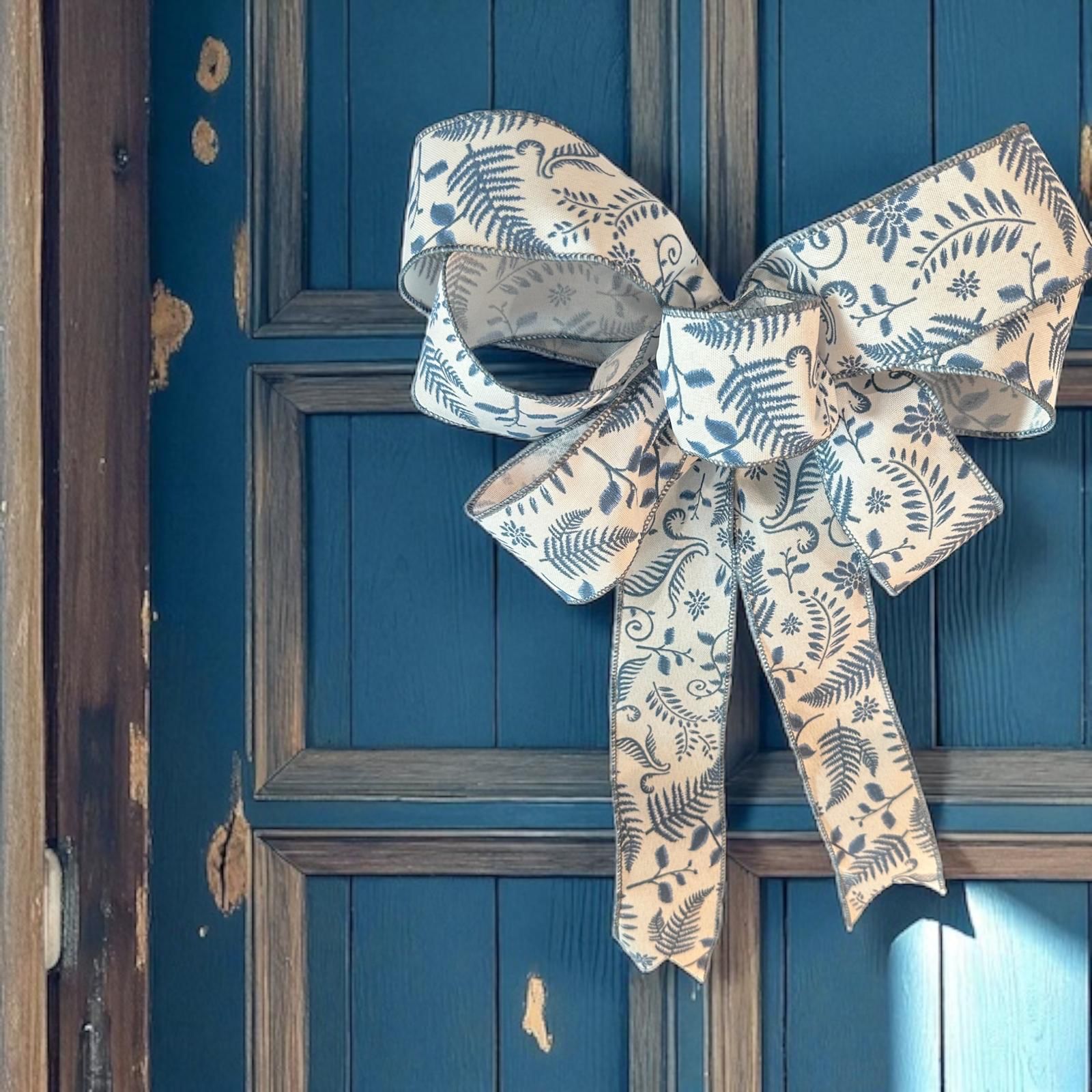 Add a breezy coastal touch to your home with this handcrafted 6 loop, 12" x 12" blue and white floral bow, made from premium wired ribbon. Designed with a nautical flair and wired edges for easy shaping, this versatile accent brings a fresh pop of charm to wreaths, lanterns, gift baskets, mailboxes, and more.
