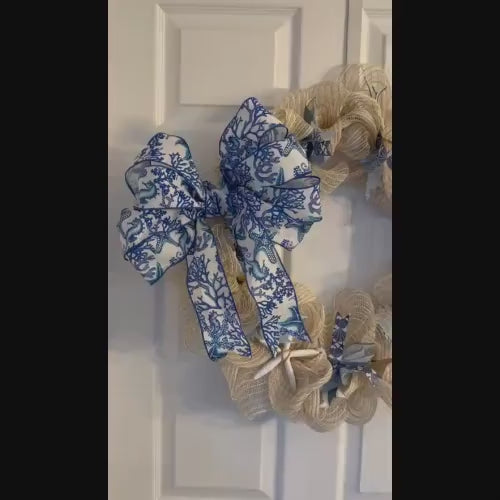 ✔️ Finished with a large wired coastal ribbon bow (removable and repositionable)