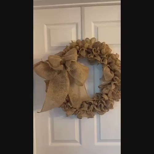 18" Natural Ruffled Burlap Wreath- With Optional Burlap Bow- 18" Wire Wreath- Every Day Wreath