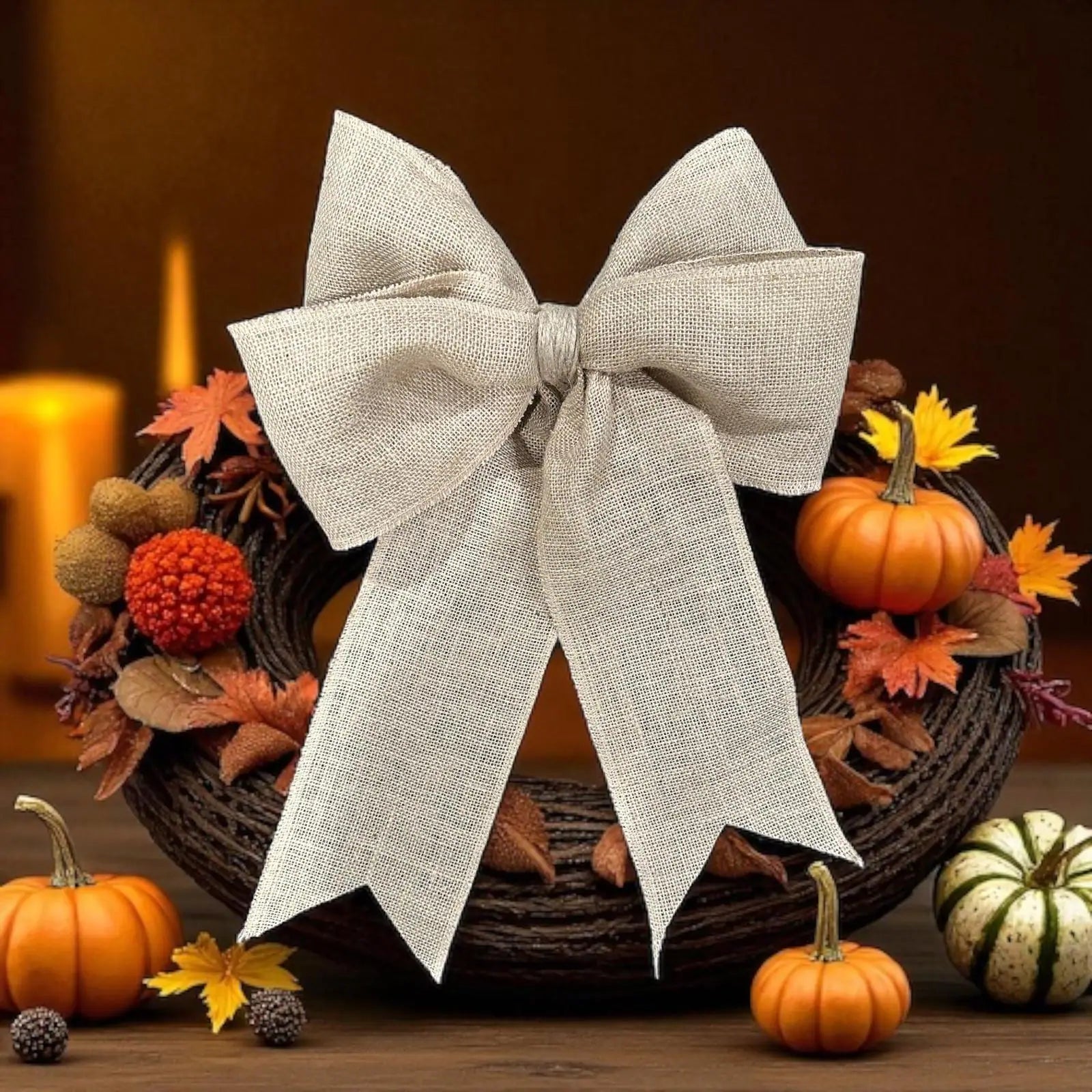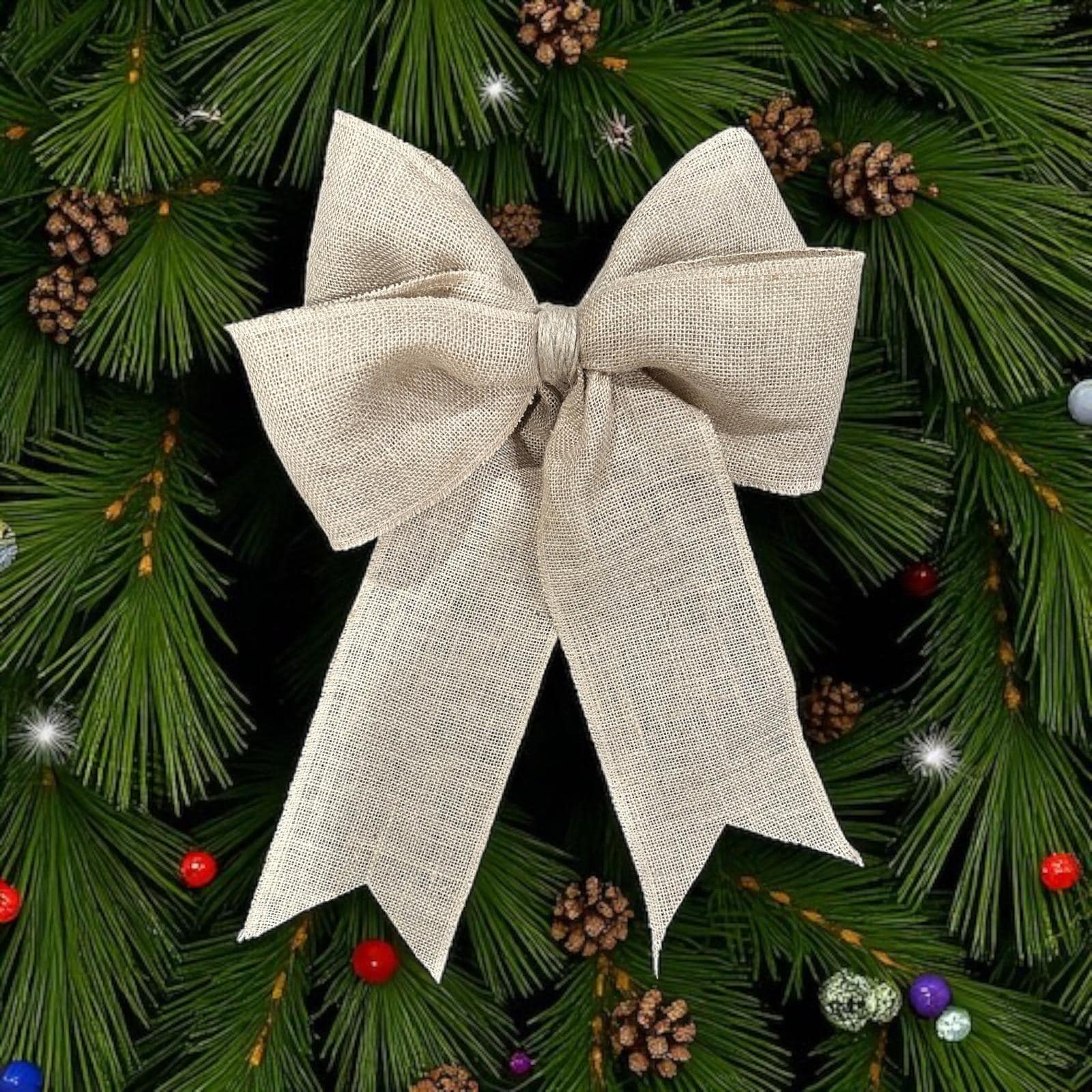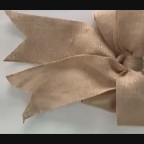 Add a rustic, handcrafted touch to your front door or seasonal wreath with this natural burlap ribbon bow. Measuring approximately 15” wide by 15” long, this generously sized bow is perfect for farmhouse, coastal, or nature-inspired decor.